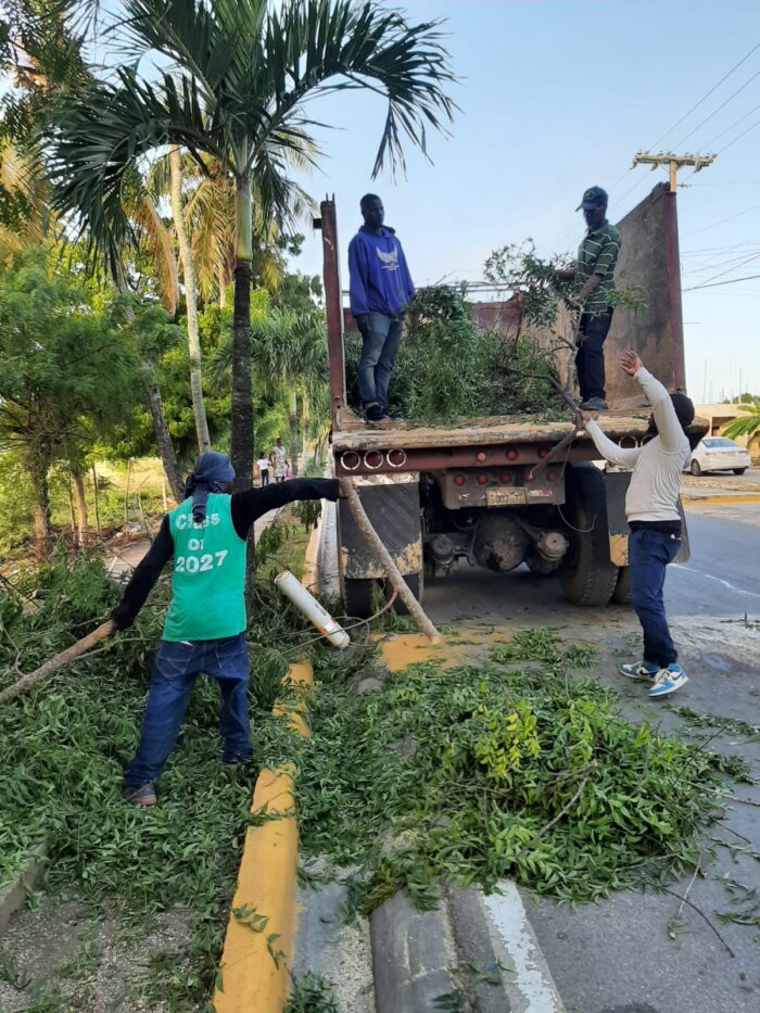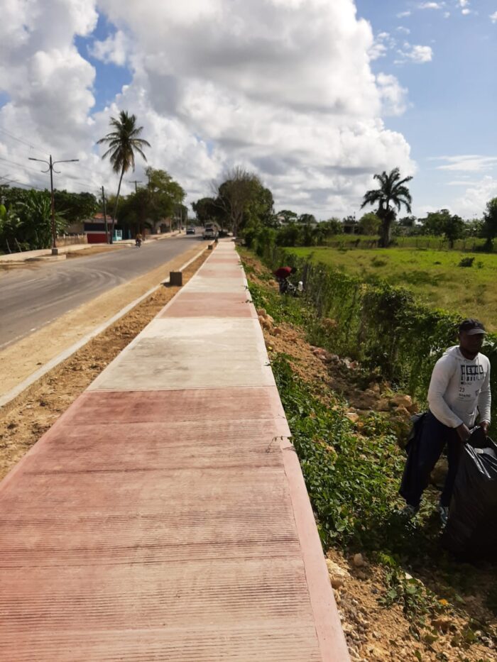 El Ayuntamiento Municipal de San Rafael del Yuma realizó un operativo de limpieza en la entrada del poblado, abarcando desde el acceso principal hasta las zonas habitadas del municipio.